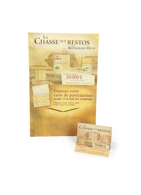 Le mandat était de concevoir la campagne publicitaire d’un concours afin de promouvoir les restaurants du Casino. Les participants courraient la chance de gagner 20 000 dollars en prix. L’affichage paraîtrait exclusivement au Casino de Montréal et sur son site Web..