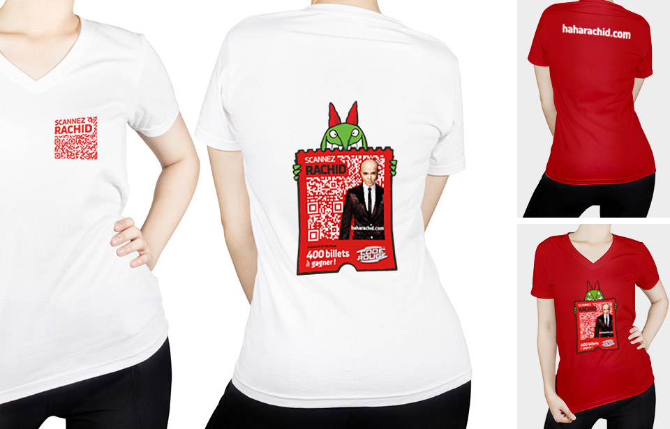 2 types de t-shirts ont été produits tous dans le but de faire la promotion du concours Scannez Rachid.