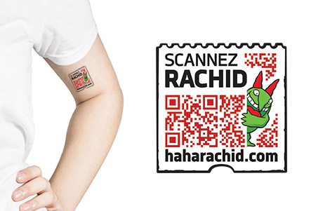 Des tatouages temporaires ont été produits et distribués sur le site du festival Juste pour rire afin de faire la promotion du concours Scannez Rachid. Ces tatouages à l'effigie du concours comprenne un code QR actif qui, lorsque scanné, redirigeait vers la page d'inscription au concours sur le site haharachid.com