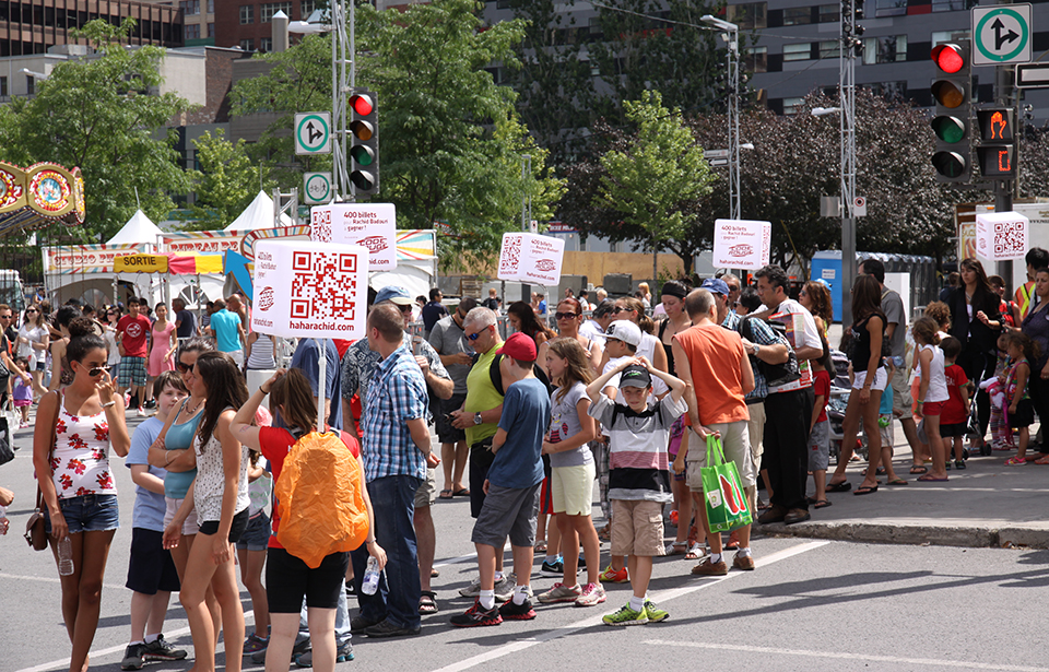 L'équipe de GX était présente sur le site du festival Juste pour rire pour faire la promotion du concours Scannez Rachid.