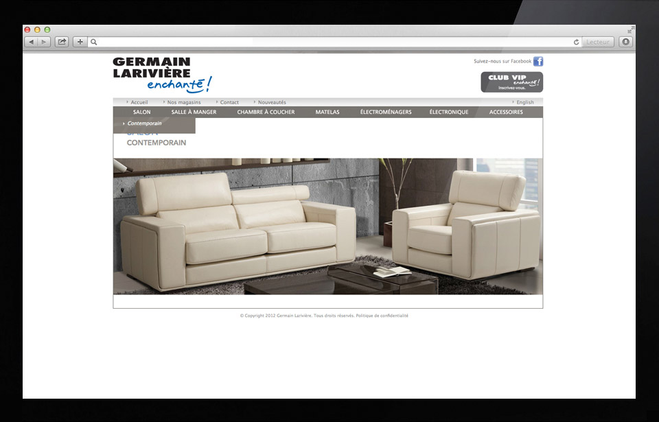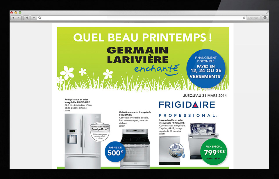 Le mandat était de créer la vitrine Web des magasins Germain Larivière. Le client avait besoin que le site lui permette d’effectuer des mises à jour et l’envoi d’infolettres mensuelles.