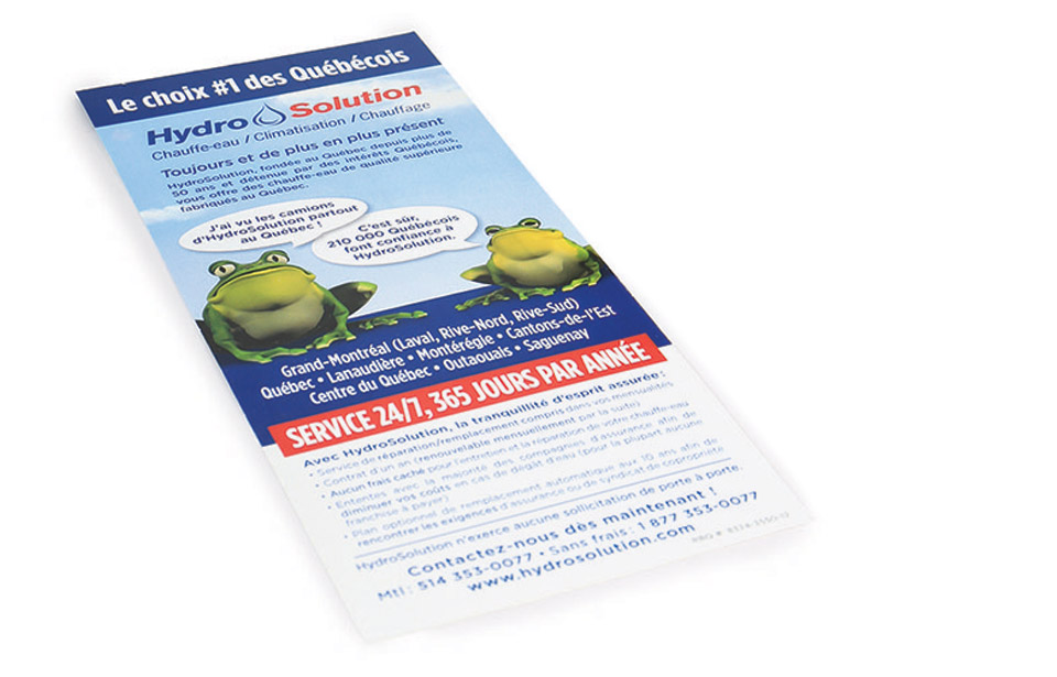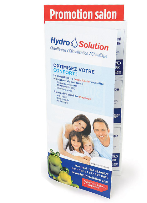 À partir des éléments principaux des campagnes de publicité d'Hydro Solution, nous avons conçu un dépliant faisant la promotion des services et produits disponibles chez Hydro Solution.