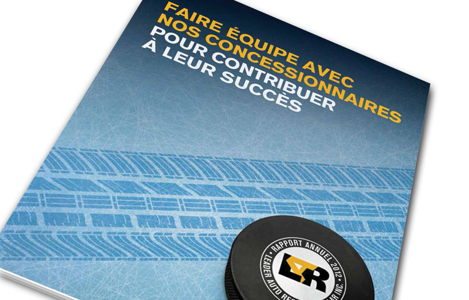 Le mandat était de concevoir le rapport annuel 2012 de LAR à l’image de la phrase clé de l’année 2012 : « Faire équipe avec nos concessionnaires pour contribuer à leur succès ». Il fallait qu’on y trouve les chiffres d’affaires de l’année 2012 fournis par PwC. Le client voulait que le design du document puisse supporter le texte, autant en français qu’en anglais.
