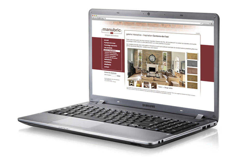 Nous avons développé un site Web qui présente les produits du fabricant avec des galeries interactives pour chacune des inspirations. Par l’entremise de photos avant-après, le consommateur peut constater comment on peut embellir une pièce grâce aux briques Manubric. Le site permet aussi aux distributeurs de commander en ligne, par accès sécurisé, tous les produits disponibles.
