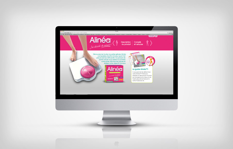 Le mandat était de créer le site Web du produit Alinéa Minceur de Nutrisanté afin de maximiser sa performance sur le Web. Le client voulait un style graphique épuré de type magazine de mode.