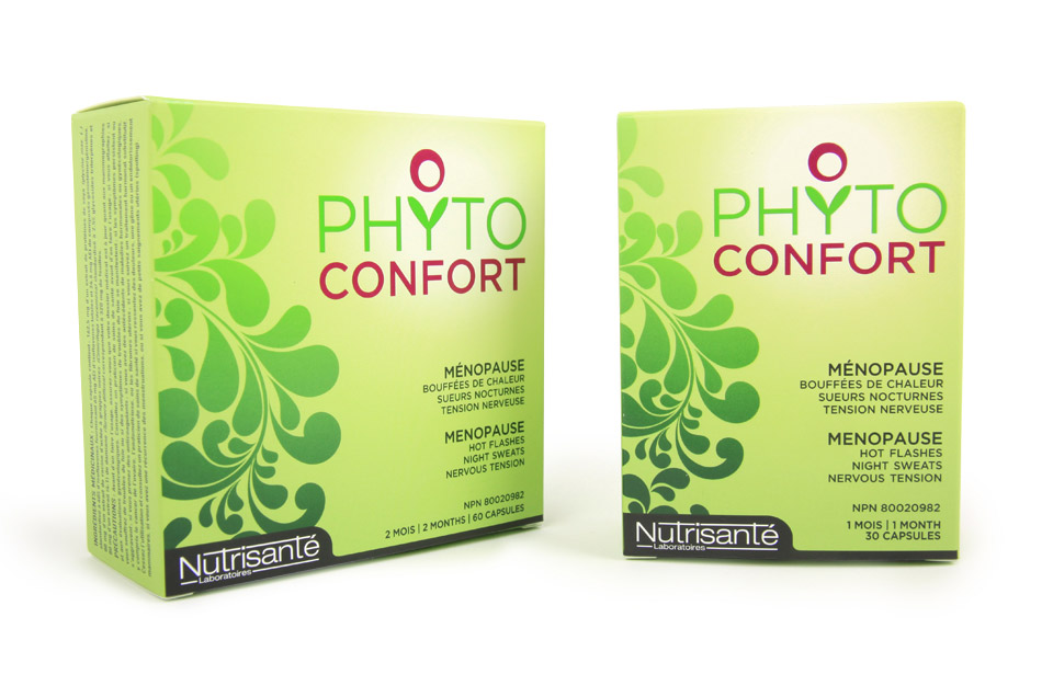 Le mandat était de créer un nouveau design pour les boites Phytoconfort de 30 et 60 capsules. Il fallait que le texte sur les boites soit en français et en anglais, et que le style des boites se démarque de celui du produit Ménoconfort de Nutrisanté : tous deux se retrouveraient côte à côte sur les tablettes des pharmacies.