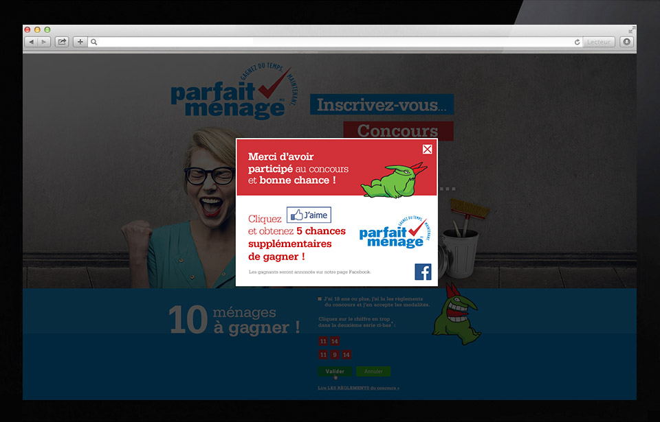 Le partage du concours Parfait Ménage sur Facebook permettait aux participants de bénéficier de chances supplémentaires de gagner lors du tirage hebdomadaire.