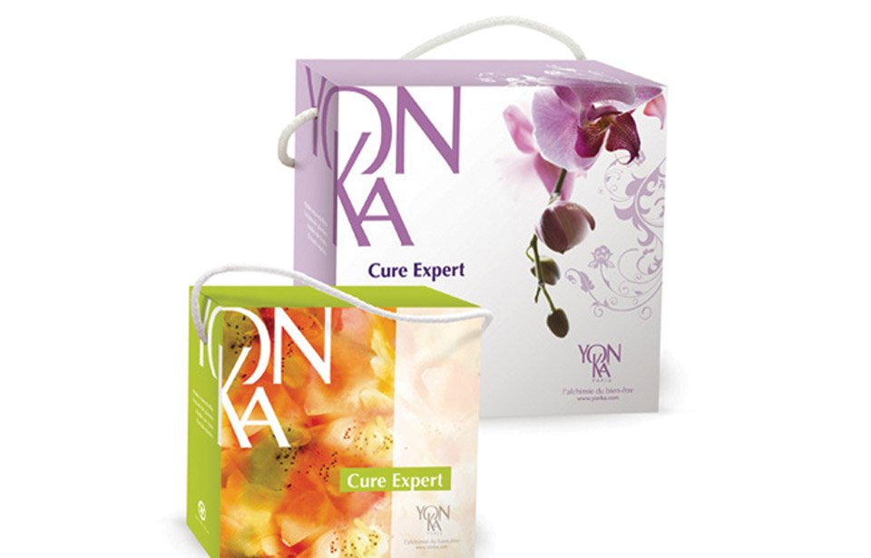 Nous avons conçu deux boites aux mêmes couleurs que les anciennes, afin que les esthéticiennes qui utilisent fréquemment les produits Cure Expert puissent aisément les reconnaître. Nous avons positionné le logo Yon-Ka de manière à ce qu’il commence sur le côté et se termine sur le devant des boites. Aussi, nous avons choisi des photos de fleurs s’harmonisant avec les couleurs de base de chacune des boites. On voit une orchidée sur la première boite, fleur qui représente la beauté suprême et la séduction. Sur la seconde boite, on voit un lys dont les couleurs chaudes rappellent la jeunesse.