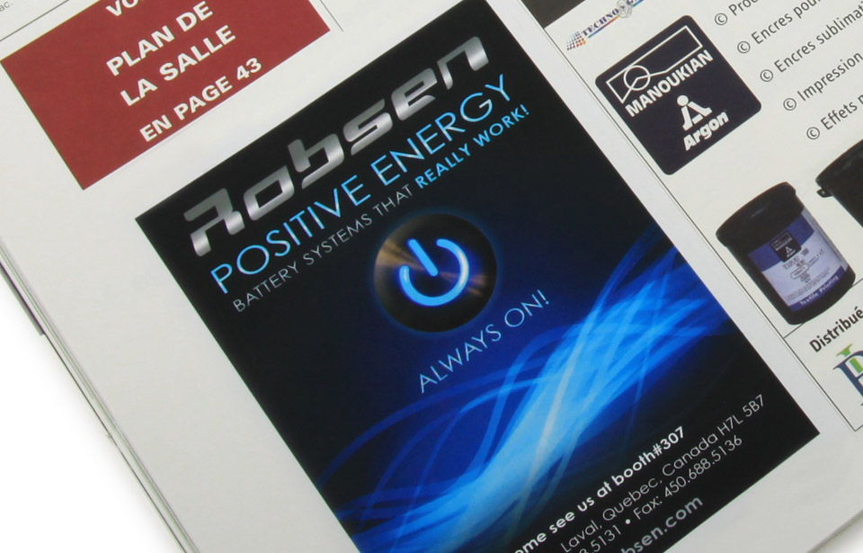 Le mandat était de créer une publicité devant paraître dans une revue qu’on fournirait à tous les visiteurs à l’entrée de l’exposition. Le client voulait qu’ils puissent voir rapidement le lien entre cette publicité et le kiosque d’exposition de Robsen.