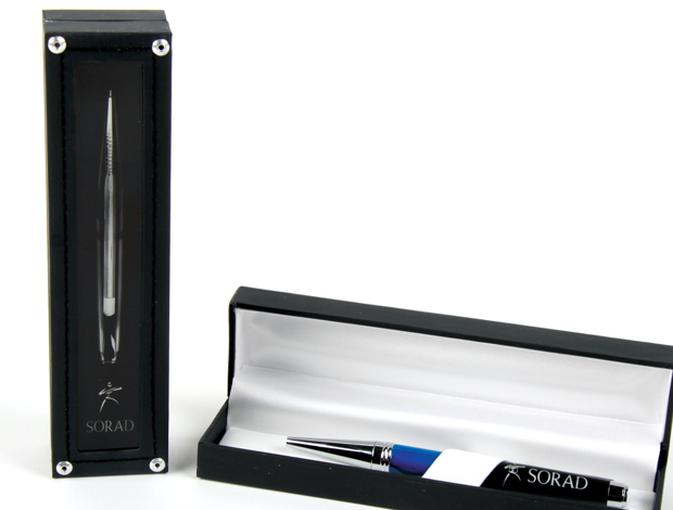 Nous avons eu l’idée d’offrir un stylo aux médecins, car ils écrivent continuellement dans les dossiers de leurs clients. Le stylo leur est livré dans une petite boite sur laquelle nous avons ajouté une pellicule transparente. Sur celle-ci, nous avons placé une image : la radiographie du stylo. Le logo de la SORAD complète le tout.